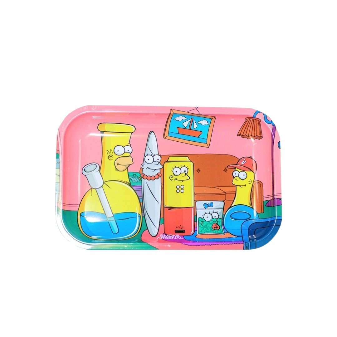 Esta bandeja está fabricada en metal de alta calidad con superficie antiadherente, ideal para liar sin ensuciar. Presenta un diseño divertido con la familia Simpson representada como distintos elementos de parafernalia cannábica. Sus medidas de 27,5 x 17,5 cm ofrecen un espacio cómodo y práctico para organizar papeles, boquillas y hierba mientras preparas tus cigarrillos.