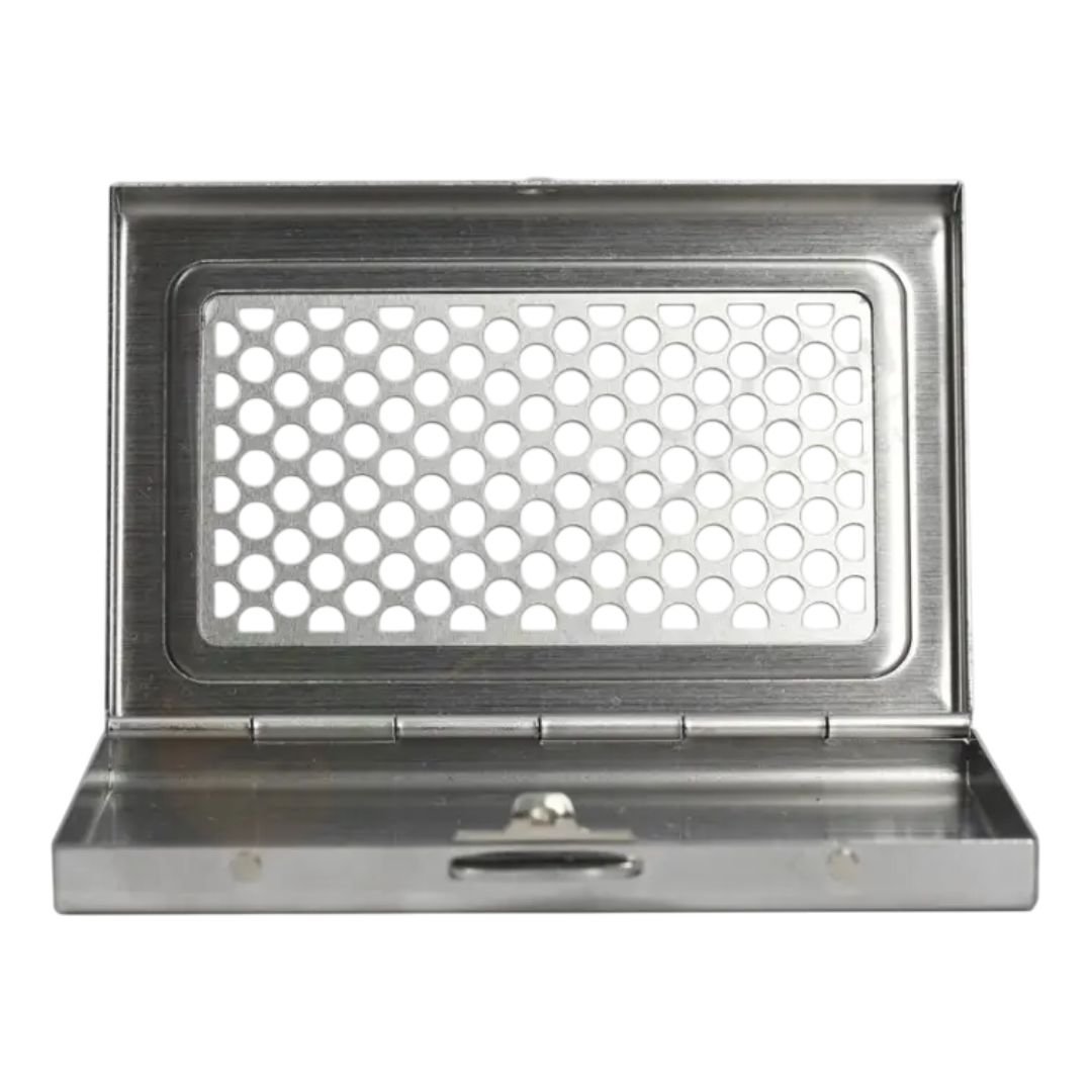 El Grinder de Metal RAW es un innovador accesorio 2 en 1 que combina almacenamiento y practicidad en un solo diseño. Fabricado en metal resistente, cuenta con una tapa tipo grinder tarjeta que funciona como rallador, permitiendo triturar fácilmente tus cogollos y hacer que el material caiga directamente al interior de la caja.
