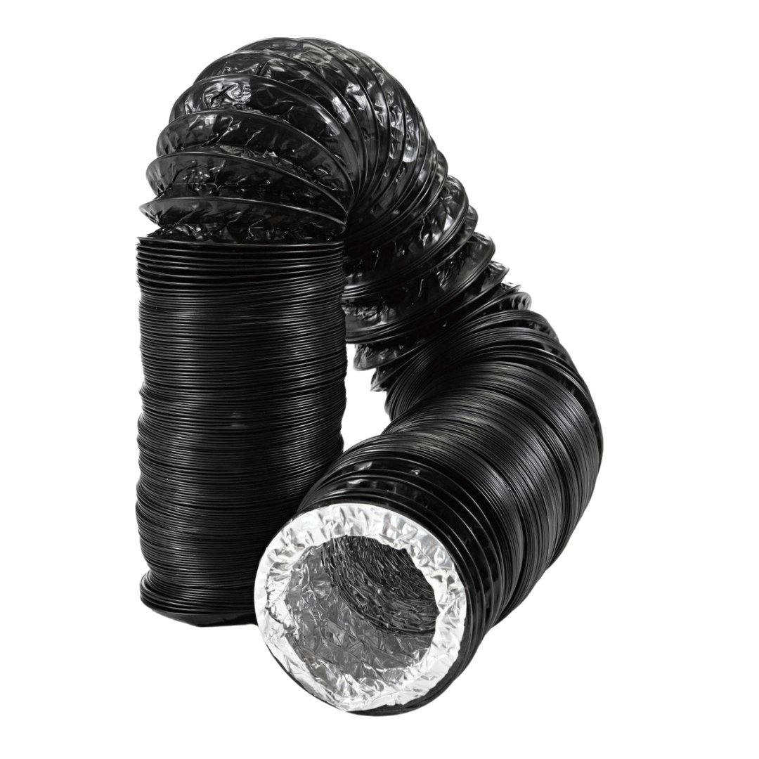 Este tubo es de plástico flexible con interior de aluminio y exterior de poliéster negro laminado , su chasis es encapsulado de acera para la extracción e inducción de aire.