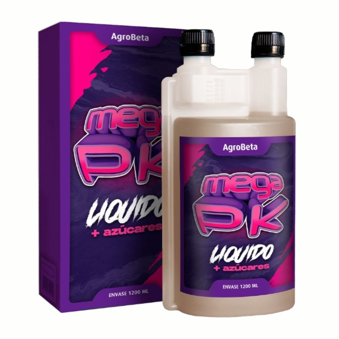 AGROBETA MEGA PK LIQUIDO es uno de los PK más eficientes del mercado, combinado con hidratos de carbono de bajo y alto peso molecular en un perfecto equilibrio que nos da un aumento tanto del tamaño como de la dureza que alcanzas las flores de nuestro cultivo. Su uso es llamativo desde la primera aplicación.
