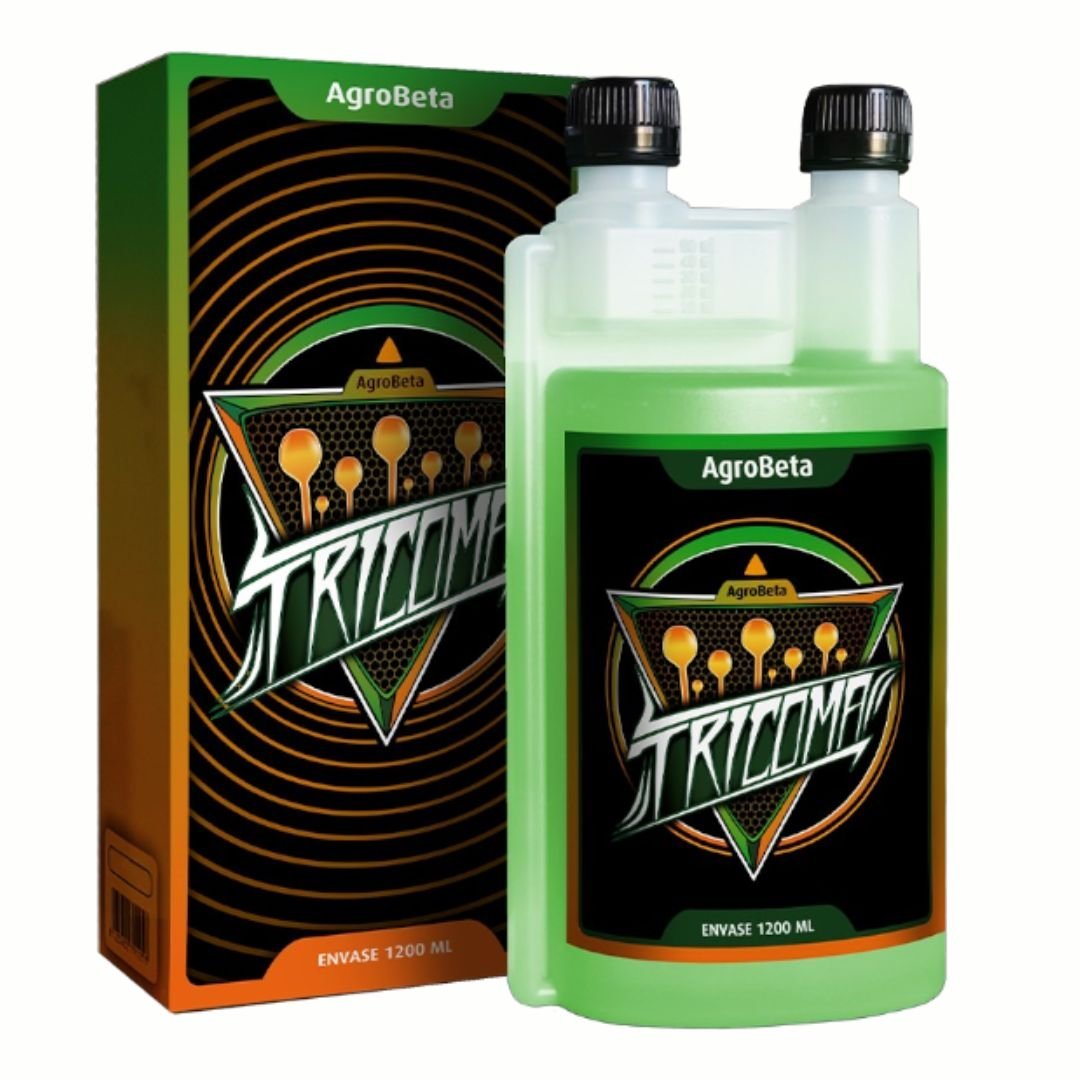 AGROBETA TRICOMA es un abono formulado con fuentes, altamente asimilables, de fósforo y potasio mezclados con bioestimuladores que intervienen en la formación de mayor cantidad de flores, mayor cantidad  de carbohidratos en forma de azúcares, mayor dureza y mayor peso final en nuestro cultivo.