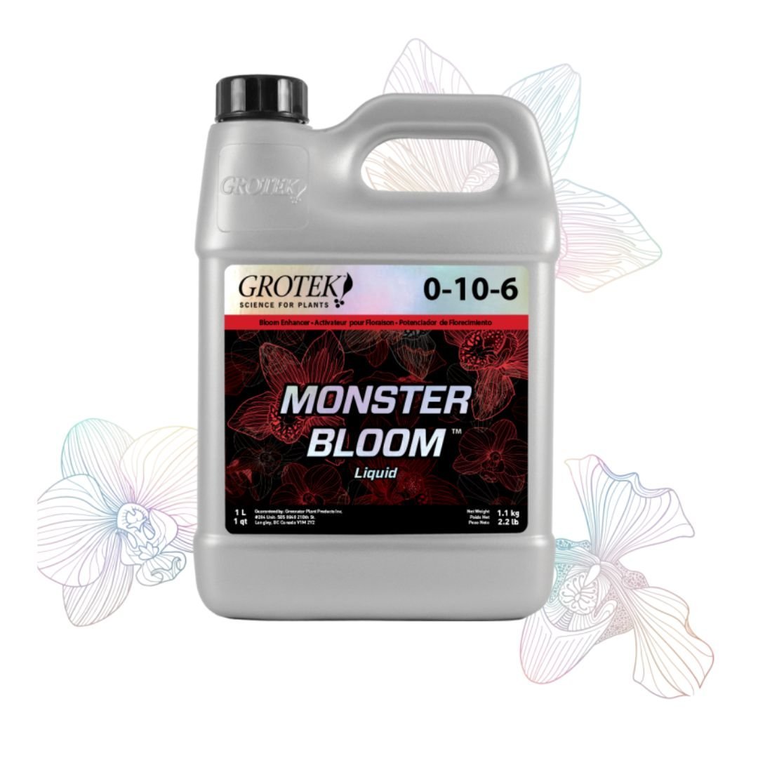 Monster Bloom Liquid brinda proporciones específicas de nutrientes para optimizar las condiciones de crecimiento de la planta, específicamente durante el desarrollo de los brotes y la etapa de floración. Las altas concentraciones de fósforo y potasio de Monster Bloom Liquid ayudan a las plantas durante los períodos de rápido desarrollo, aportando: