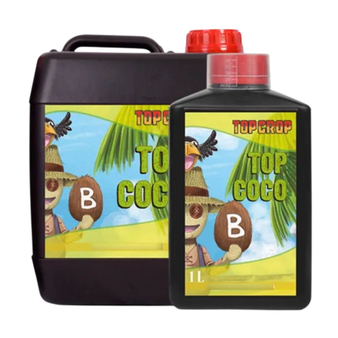 Top Coco B Top Crop es un concentrado líquido eficazmente formulado para la preparación de soluciones nutritivas adecuadas para su aplicación en medios orgánicos de coco. Es un fertilizante equilibrado que contiene los nutrientes principales, auxiliares y micronutrientes necesarios para todos los ciclos de la planta.