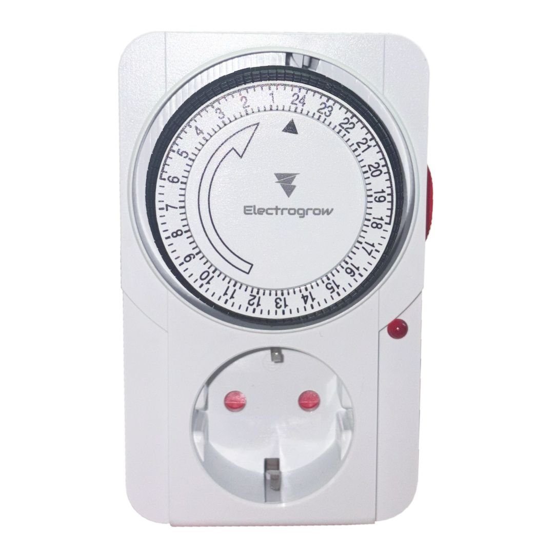 El Cuadro Tempo Box 4x600W es un sistema de control diseñado para manejar hasta 4 focos de 600W simultáneamente, ofreciendo una potencia total de 2400W. Su reloj temporizador analógico es fácil de programar e incorpora una batería de respaldo que asegura el mantenimiento de los ciclos de luz incluso en caso de cortes eléctricos.