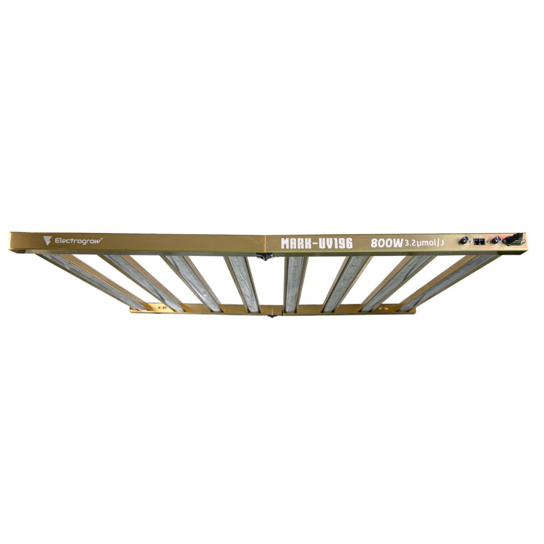 Además, integra chips UV especiales que estimulan la producción de resinas, terpenos y fortalecen la estructura de la planta, logrando cosechas más abundantes y de mayor calidad.